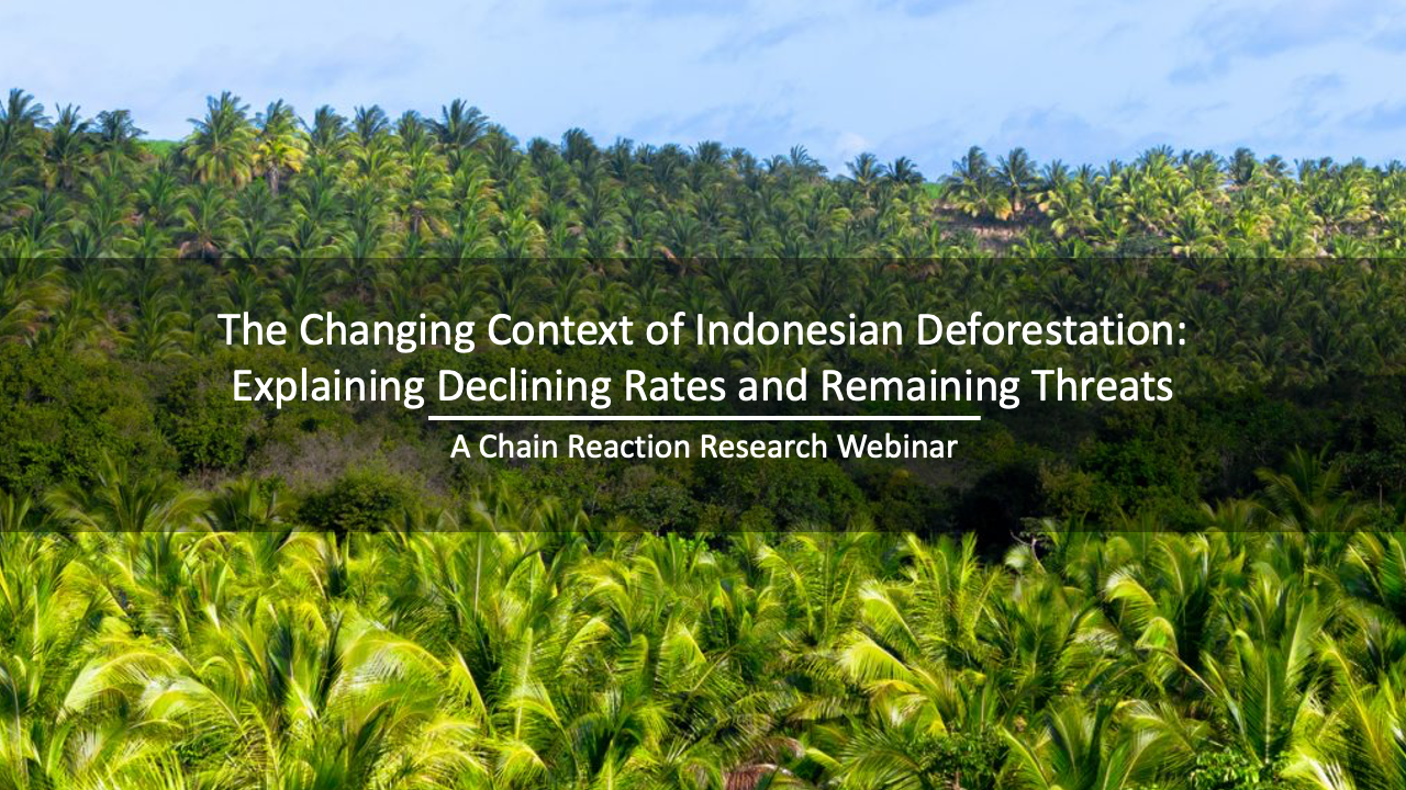 Chain Reaction Research held a webinar on April 14th to share our research on deforestation in Indonesia that is attributed to the development of oil palm plantations. Palm oil-driven deforestation has fallen to its lowest level in four years in 2021. The declining deforestation rates for oil palm in Indonesia are promising. However, recent …
