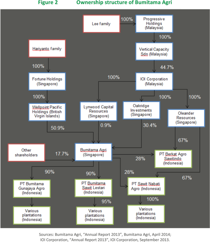 Bumitama Agri Ltd. (BAL: SP) was first listed on the Singapore stock exchange in April 2012 and has a market capitalization of USD 1.72 billion. Bumitama is majority-owned by the Hariyanto family from Indonesia, whilst the Malaysian IOI Corporation (IOI) owns a 31% stake in the company. In addition, Bumitama and IOI operate several joint ventures together.