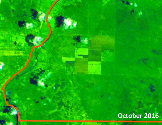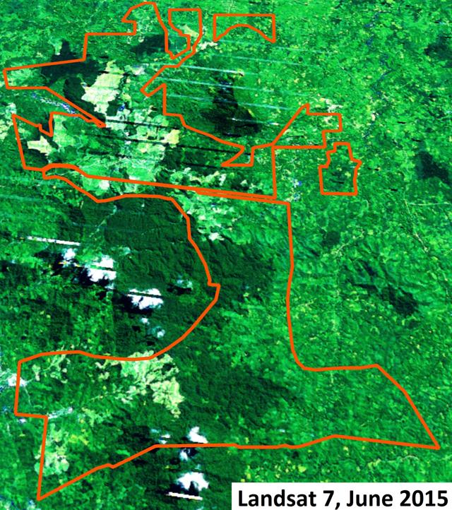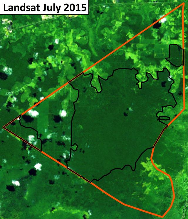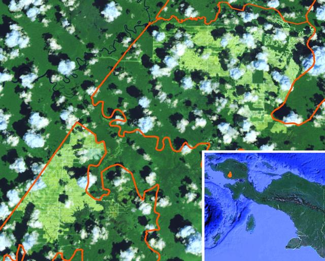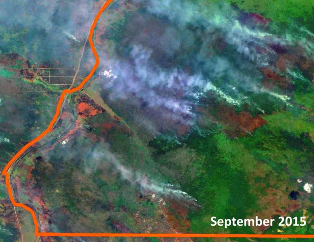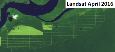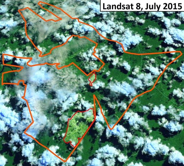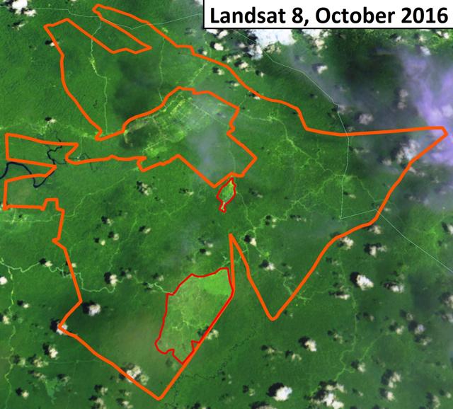 Figure 9: Cleared forest landscape by ANJT’s plantation companies PT Putera Manunggal Perkasa (PT PMP) and PT Permata Putera Mandiri (PT PPM) in West Papua; Landsat imagery of 3 to 11 December 2015.