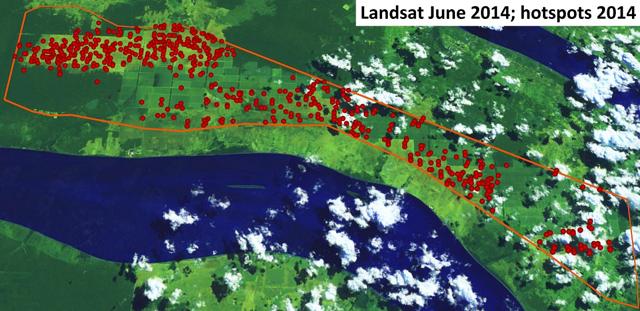 Figure 4: Recorded hotspots 2014 in SGRO’s subsidiary PT National Sago Prima concession.