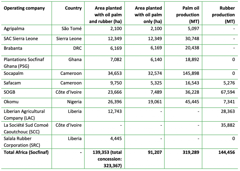 Figure 3: Socfin oil palm and rubber plantations in Africa
