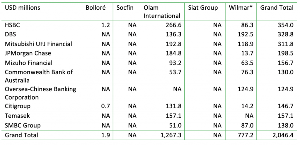 Source: Forests & Finance, viewed January 2022. Identified financing, weighted. Including shares, bonds, loans, under-writing services; 2017-2021; for Feronia, no financing was identified. *Wilmar indicates the information is incorrect but cannot provide CRR “with additional information as this is commercially sensitive information.”