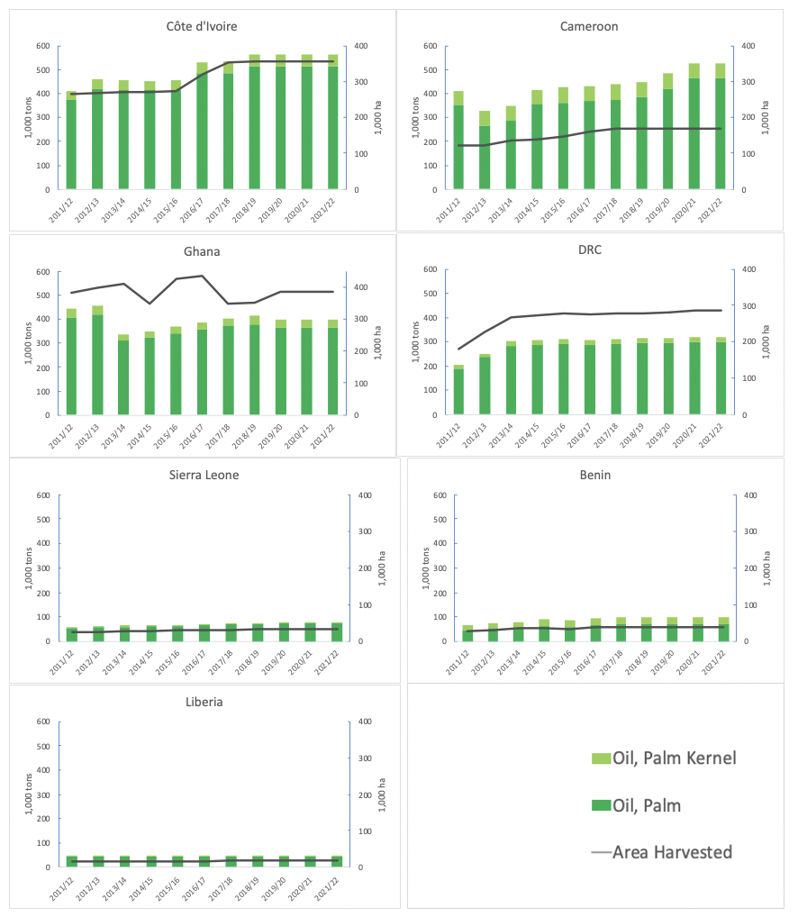 Figure B: Selected African countries and palm oil and kernel production and harvesting