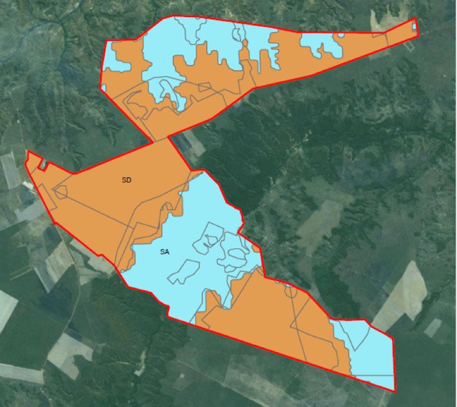 Figure 14: Original vegetation at Fazenda Parceira II. SD = Forested Savanna, SA = Wooded Savanna. Source: MMA and MCTI, 2014.
