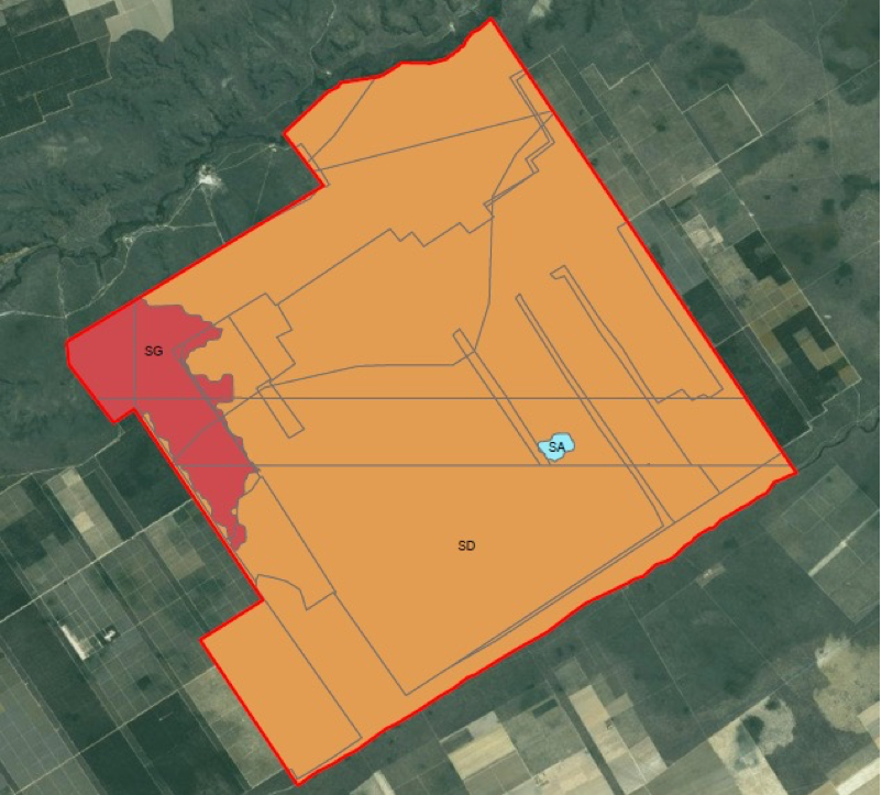 Figure 12: Original vegetation at Fazenda Jatobal. SD = Forested Savanna, SG = Woody-Grass Savana, SA = Wooded Savanna. Source: MMA and MCTI, 2014.