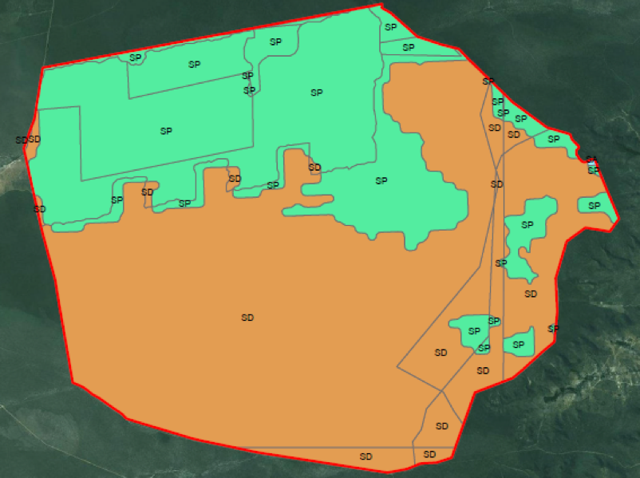 Figure 10: Original vegetation at Fazenda Preferencia. SD = Forested Savanna, SP = Park Savanna. Source: MMA and MCTI, 2014.