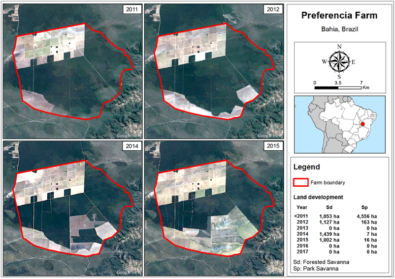 Fazenda Preferencia is a 17,799 ha farm located in Baianópolis (Bahia). BrasilAgro purchased it on September 11, 2008. The farm is used for cattle farming and the production of soy and corn. 80 percent of the farm is under development, according to BrasilAgro’s Q4 2017 results.