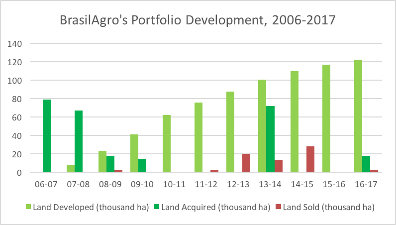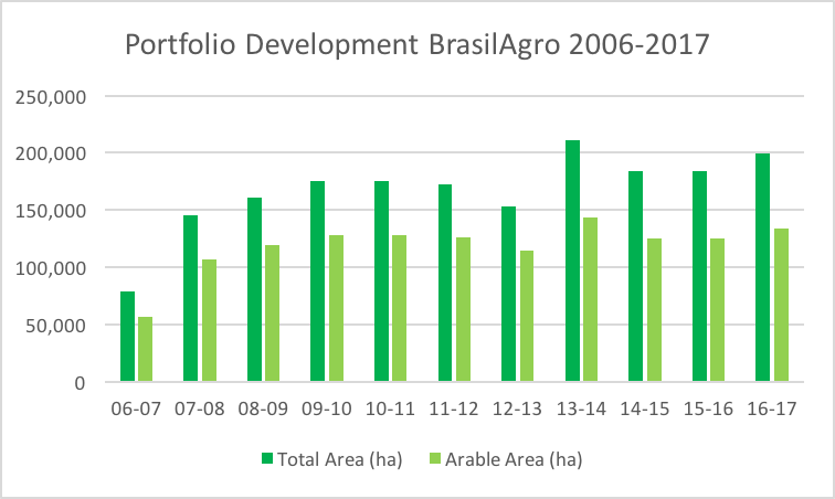 Figure 1: BrasilAgro’s land portfolio development. Source: BrasilAgro’s 2017 institutional presentation.