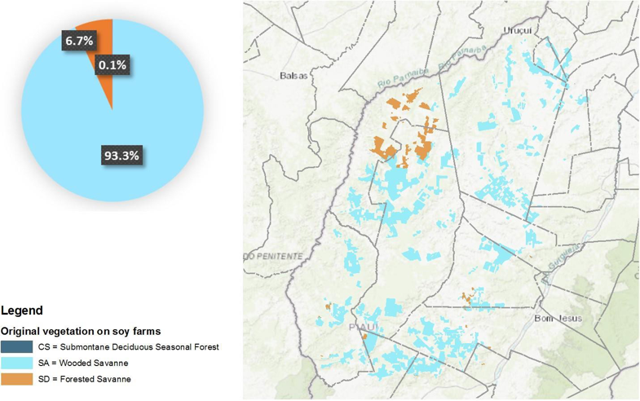 All of the original native vegetation on soy farms in Piauí is classified as forest (forested savanna and wooded savanna), using the vegetation classification standard of Brazil’s Forest Reference Emissions Level (NYSEARCA:FREL) in the Cerrado Biome (Figure 5).