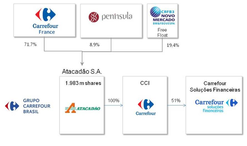 Carrefour SA holds 72 percent of the shares of Carrefour Brasil. Remaining shares are held by Peninsula and other investors through the stock market (Figure 12).