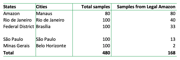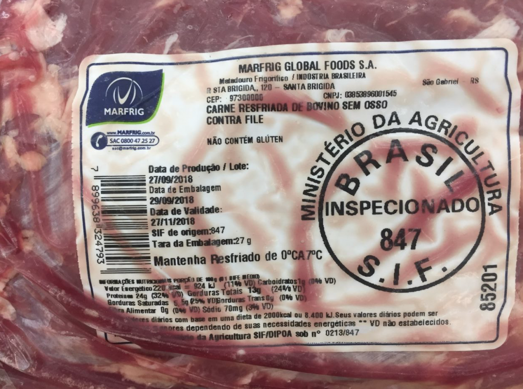 Samples were randomly collected during visits to 48 Carrefour-owned supermarkets in November 2018. The sample includes frozen beef products sold in five different Brazilian cities, including Manaus, located within the Legal Amazon. CRR selected supermarkets from states and municipalities with the highest presence of Carrefour stores.