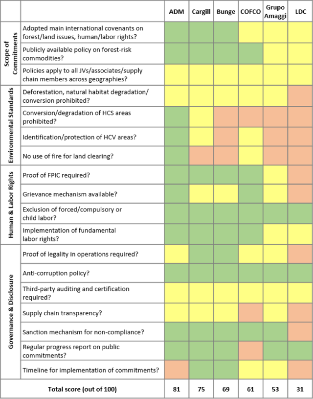 Cargill, ADM, Bunge and COFCO all have environmental and social governance (NASDAQ:ESG) policies that specifically refer to deforestation and soy as a forest-risk commodity. Grupo Amaggi and Louis Dreyfus Company (LDC) have more generic ESG guidelines with reference to deforestation. This may change for LDC if it indeed publishes a recently-announced soy-specific policy.