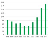 Figure 3: Coca cultivation in Colombia, 2008-2017 (in thousand hectares)
