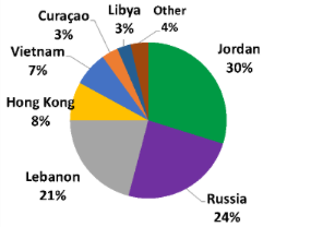 Of the 3.4 million heads that were legally slaughtered, 3.3 million (97 percent) were used for domestic consumption. Figure 8 shows the export destinations of the remaining 0.1 million heads slaughtered. The largest volumes went to Jordan (5,146 tons), Russia (4,182 tons) and Lebanon (3,593 tons). The value of the 2017 beef exports totaled USD 67.4 million. This amount made up 56 percent of the total export value of the beef sector and was mainly concentrated on frozen deboned beef. The remaining 44 percent (USD 52.1 million) of the 2017 export value came from livestock exports. As seen in Figure 8, a total of 87,134 exported living animals were shipped to Iraq (35,924), Jordan (27,844) and Lebanon (23,366). In 2015 and 2016, the reported revenue through beef exports was lower than the 2017 reported revenue.