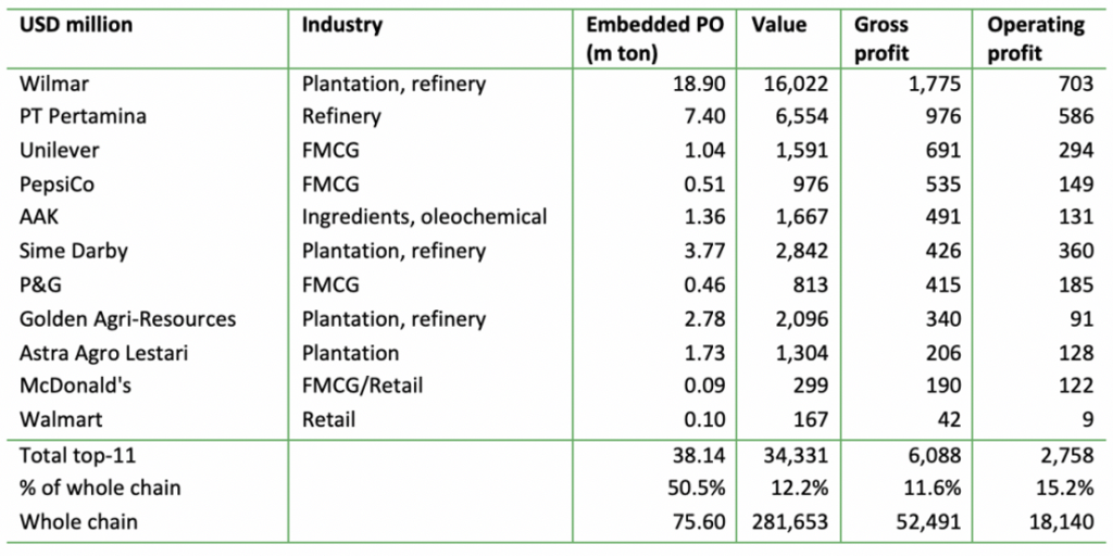 Figure 6: Top 11 companies in the palm oil value and profit chain, ranked by gross profit