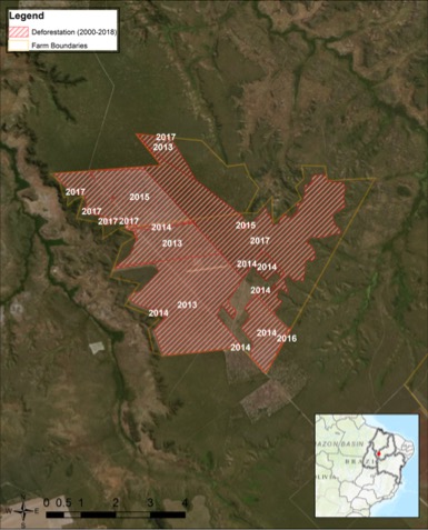 Between 2010 and 2017, some 2,381 ha were deforested at these two farms. In addition, a fire that broke out in a recently cleared area of the farm spread and caused further damage to 110 ha native vegetation both within and outside of the boundaries of the farm.