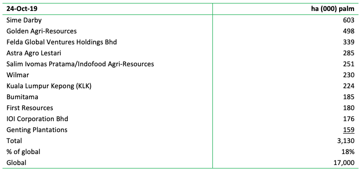 FGV (2 percent) and IOI (0 percent) have a low exposure. First Resources (11 percent), Kuala Lumpur Kepong/KLK (8 percent), GAR (8 percent), Genting (7 percent) and Sime Darby (6 percent) have limited exposure.