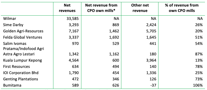 Figure 4: Percentage of total net revenues to be related to own CPO production (2018)