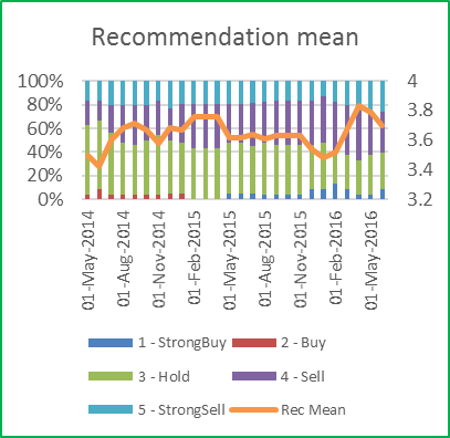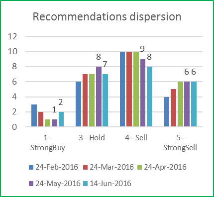 Figure 3: IOI analysts’ recommendation mean and dispersion (Source: Thomson Eikon).
