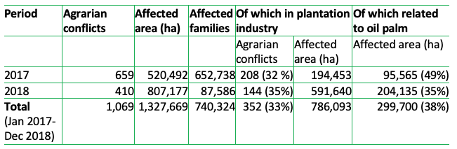Figure 1: Scale of agrarian conflicts in Indonesia linked to oil palm