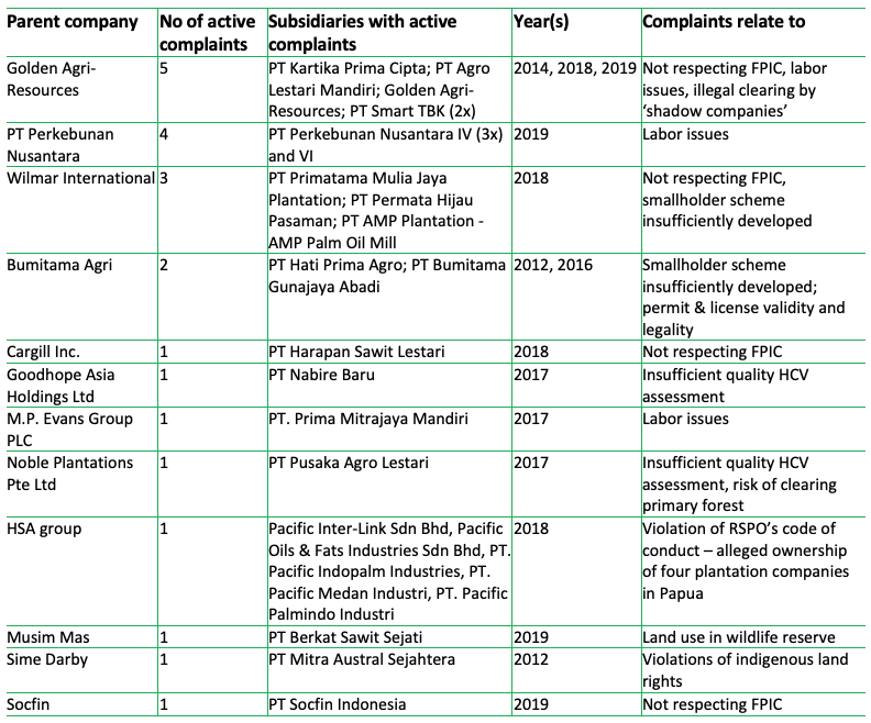 Source: RSPO Case Tracker on Indonesia in November 2019