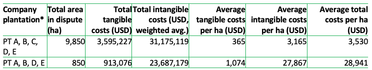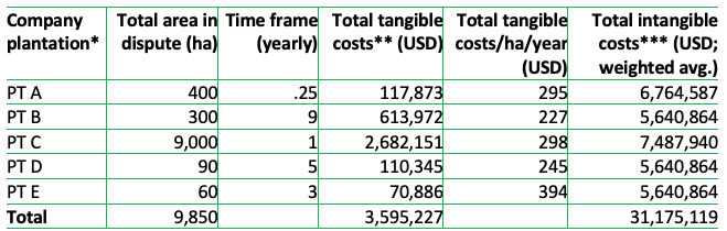 Figure 4: Tangible and intangible costs of social conflict in five plantations in Sumatra and Kalimantan