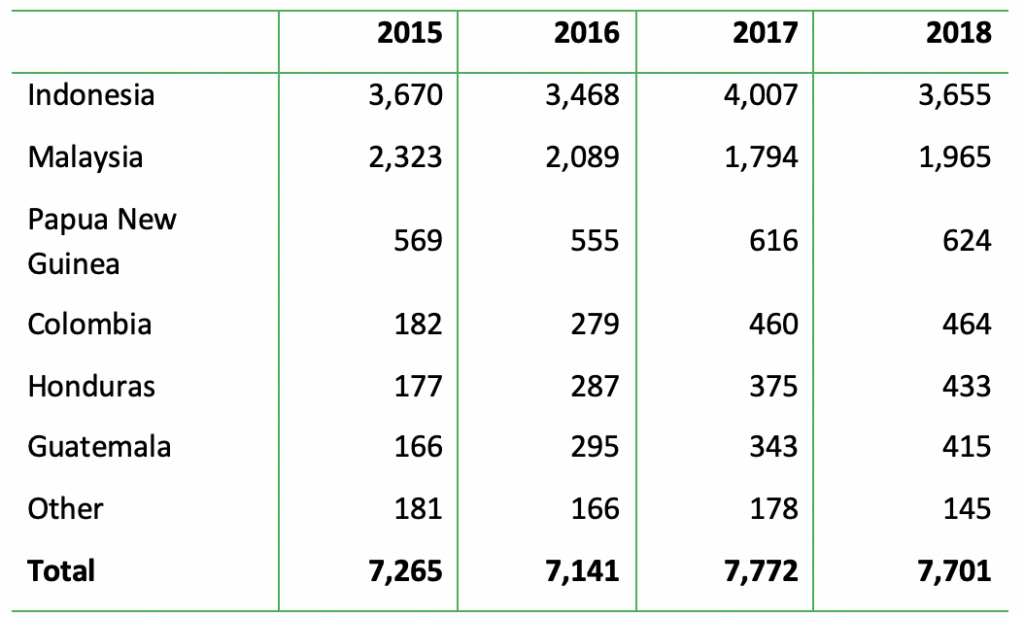 Figure 5: EU28 Imports of Palm Oil from 3rd Countries (1,000T)