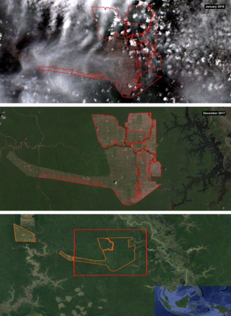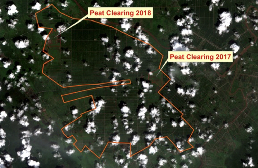 Figure 4: Peat clearing by Daesang Corporation in West-Kalimantan between 2017-2018