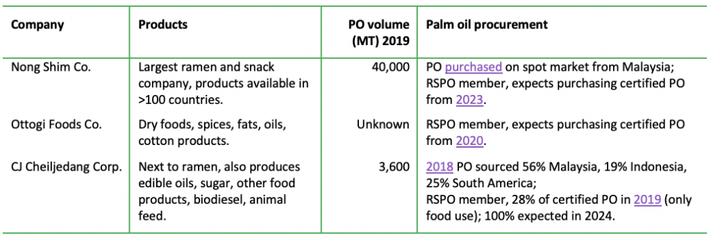 Source: Chain Reaction Research, Bloomberg, viewed 27 Nov 2020; Nong Shim Co., Ottogi Foods Co., CJ Cheiljedang Corp. AK Holding, JC Chemical, Posco International, LG Corporation, Samsung C&T, Daesang Corporation. No adjusters for % palm oil turnover versus total activities have been applied.