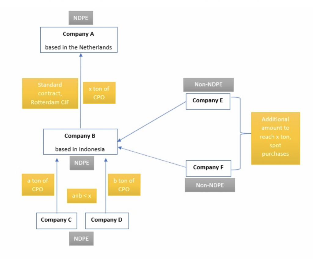 Buyers of CIF products usually have little leverage over the seller in the Rotterdam markets as they only become aware of the product’s origin at the time of delivery. Purchases are often made from bulking facilities or traders. The supply will often already be mixed at the time of sale, often by as many as 10 individual mills. Buyers are given a list of suppliers when they take physical ownership of the oil in Rotterdam. In this scenario, a company that actively decided to not enter a long-term contract with a company may have just bought CPO from the same company in a one-off spot purchase.