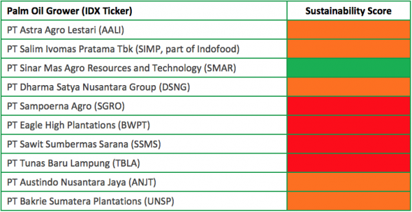 IDX-listed palm oil growers, sustainability scores: