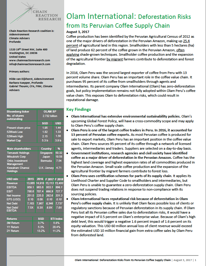 Report: Olam International – Deforestation Risks from its Peruvian Coffee Supply Chain