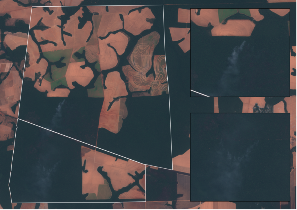 Figure 3. Fires detected on August 29 in the Legal Reserve of a parcel of Fazenda Perdizes operated and entirely owned by SLC Agrícola in Porto dos Gaúchos, Mato Grosso, Brazil