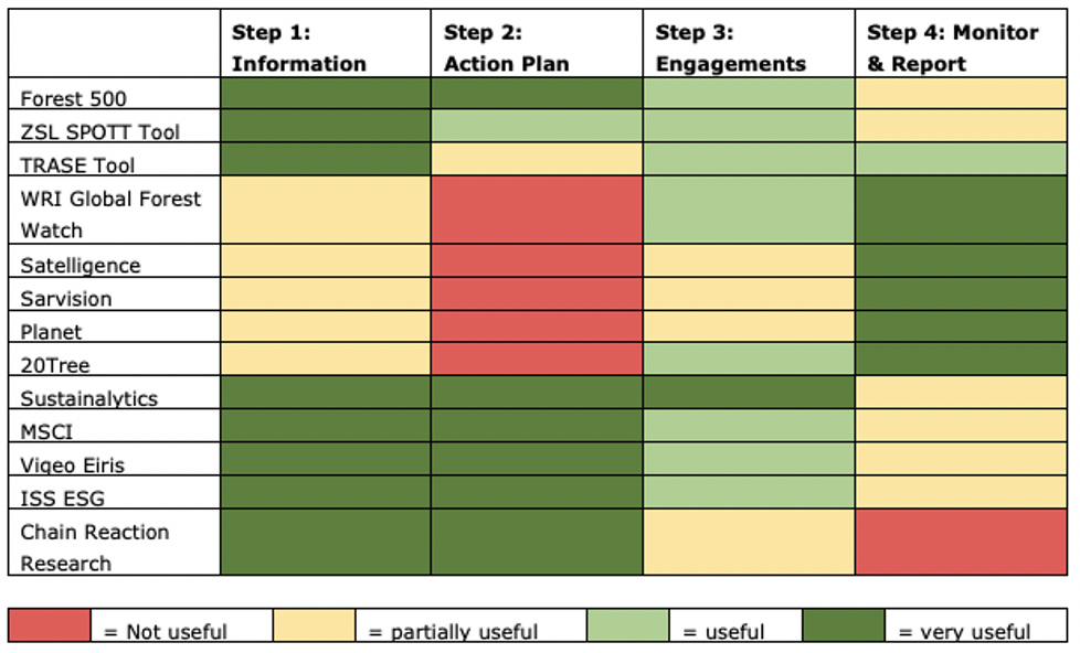 Financial institutions have also appealed to governments to curb deforestation in global supply chains and mitigate exposures in portfolios. For example, 29 financiers with USD 3.7 trillion in assets wrote to the Brazilian government over the summer, calling for urgent efforts to combat deforestation and prevent widespread divestment. Financial institutions are exposed to the same deforestation risks as the companies they finance, but do not have access to the same level of proprietary information and decision-making power to address them. Therefore, it is in the financial interest of investors to use all available information to research, engage, and monitor companies as a means of mitigating portfolio exposure to deforestation risk.