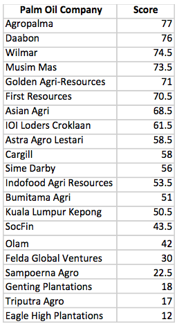 Figure 1: Palm Oil Companies Scored in Green Cats: Scoring Palm Oil and Soy Companies on Forest Policies and Transparency. Source: ForestHeroes.org.