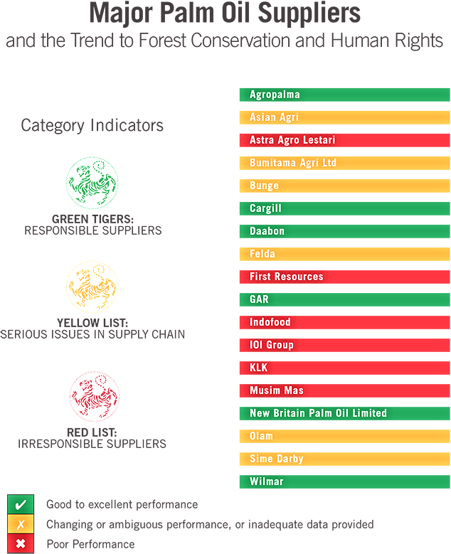 The report gives industry giants such as Wilmar (WIL:SP), Golden-Agri Resources (GGR:SP), and Cargill that have in the past year adopted “No Deforestation, No Peat, No Exploitation” policies a ranking of “Green Tiger,” to recognize how they are successfully adapting their business strategies to help advance a new era for agriculture that combines increasing production with conservation of forests and other ecosystems.