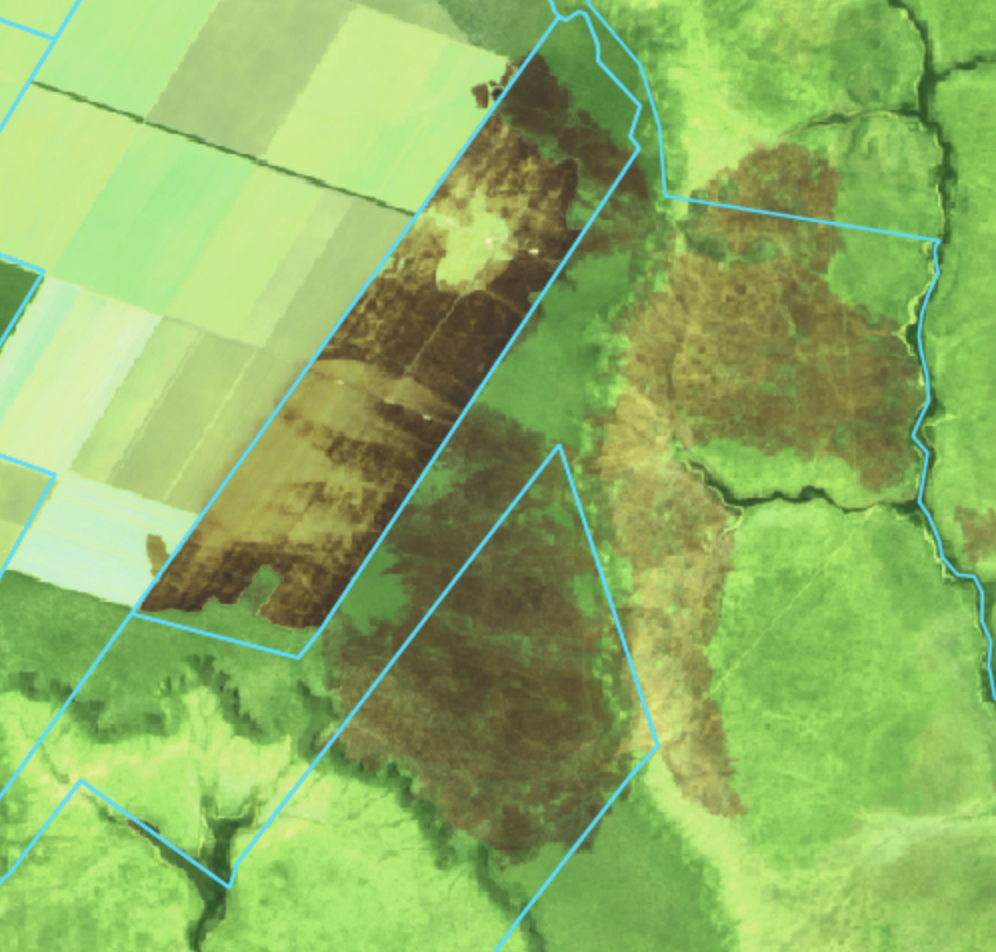 Figures 1-3: Wildfires, land clearing on SLC Agricola, JJF Holdings areas