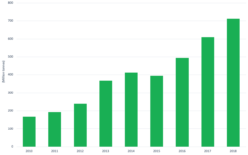 The Brazil-China commodities trading connection has been lucrative for Brazilian producers. Amid the U.S.-China trade dispute, volumes of Brazilian soy exported to China rose sharply, leading to increased deforestation in the Amazon. Brazil exported 84 million tons of soy in 2018, a 24 percent year-on-year rise, with a majority of foreign sales heading to China. In December, Brazil sent 4.11 million tonnes to China, double the same month in 2017. That total made up 97 percent of all volumes Brazil exported in December. Amid the change in trade flows, COFCO saw its trading volumes in Brazil rise by almost 18 percent last year.