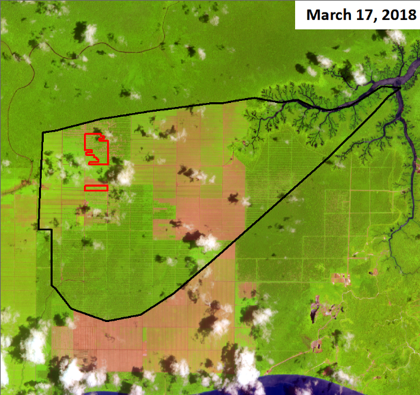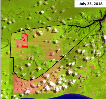 Figure 1: 127 ha deforestation of peat and peat forests at PT Persada Kencana Prima from March to July 2018. Source: Aidenvironment.