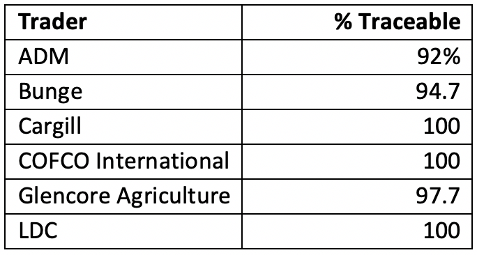 Figure 1: Percentage of soy volumes traceable to farm for direct sources in SCF’s 25 PM